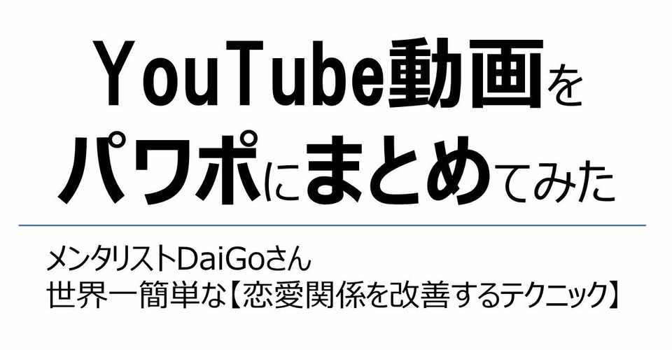 Youtube動画をプレゼン資料風にまとめて分かりやすくしてみました 世界一簡単な恋愛関係を改善するテクニック By メンタリストdaigo 遠藤尚幸 43歳のアンチエイジング Note