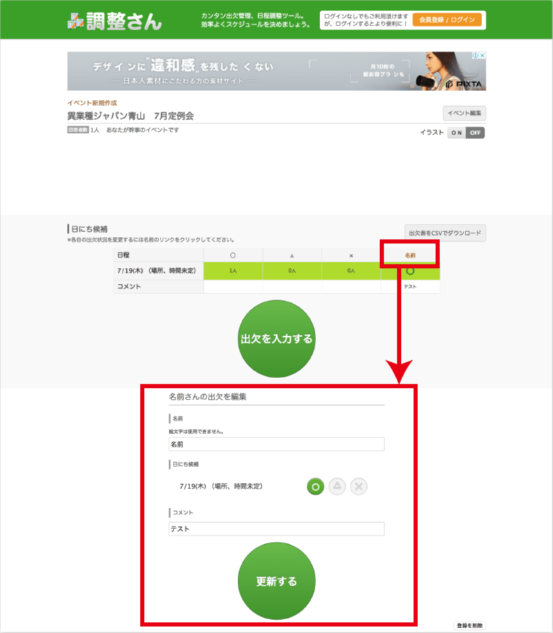 調整さん イベントに使える簡単スケジュール調整 出欠管理ツール 調整さん