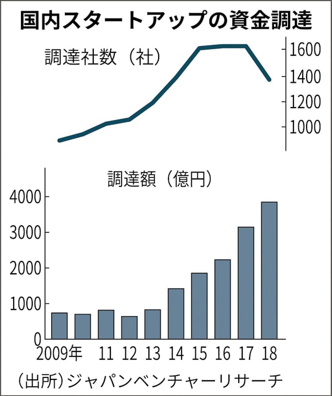 国内スタートアップ投資 18年は金額最高も件数減 日本経済新聞