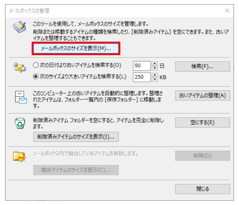 メールボックスのサイズを調べる Outlook